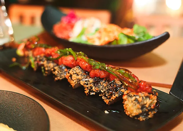 The chefs and staff are top tier. Nixon our server was so pleasant and really helpful with the menu. The atmosphere is amazing, such a boho chic vibe with a touch of class and elegance. The prices for the quality are right on par. The rolls are filling and uniquely curated. The fish is so fresh and thank you presentation is exquisite! Really happy we decided to stop here even though we were heading for another restaurant. It was a wonderful happy accident. I will definitely be coming back whenever on the island. Well worth the ferry ride from St. Thomas if you’re not on St. John. Might have to stop back in now that I’ve written this review I am craving a couple more rolls. Though we didn’t try the bowls I imagine they are insanely flavorful and delicious this chef has been classically trained by Japanese sushi chefs and has a keen eye for quality and high standard.