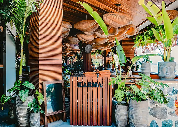 We had a wonderful time at Karma. The swanky ambience lured us in, fun speciality drinks made us stay, and delicious food had us wanting to come back for more! We enjoyed some drinks down on the sand after dinner and it was the perfect evening. Definitely a must visit, esp if you like sushi.